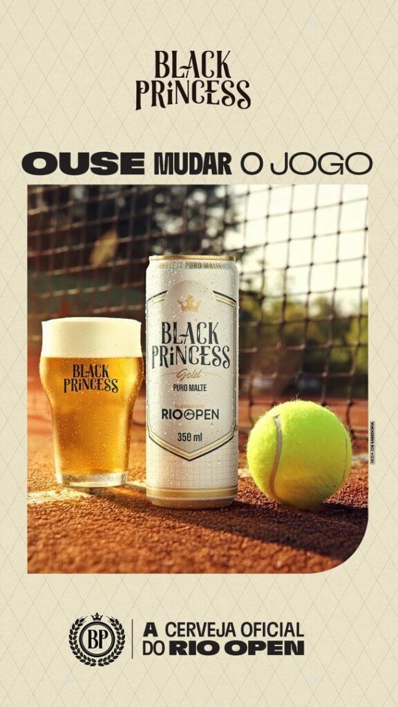 A Black Princess celebra o Rio Open 2026 como a cerveja oficial do torneio pelo quarto ano consecutivo. Com o slogan “Ouse Mudar o Jogo”, a marca reforça sua identidade clássica e autêntica, valores que dialogam diretamente com a sofisticação do evento. Nesta edição, a marca está lançando uma lata exclusiva e comemorativa da Black Princess Gold (Puro Malte), criada especialmente para o torneio. Os espectadores também poderão experimentar o chopp Black Princess Gold, disponível em todos os espaços, e o chopp Black Princess Let’s Hop (IPA), apenas no Corcovado Club.